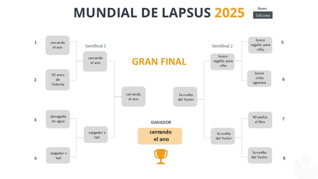 Vuelve el Mundial de Lapsus y en su edición de 2025 se alza como ganador «cerrando el ano», en lugar de «cerrando el año», con un 66 % de los votos, frente a «remesas por la vuelta del Yunior», en vez de «remesas por Western Union».
