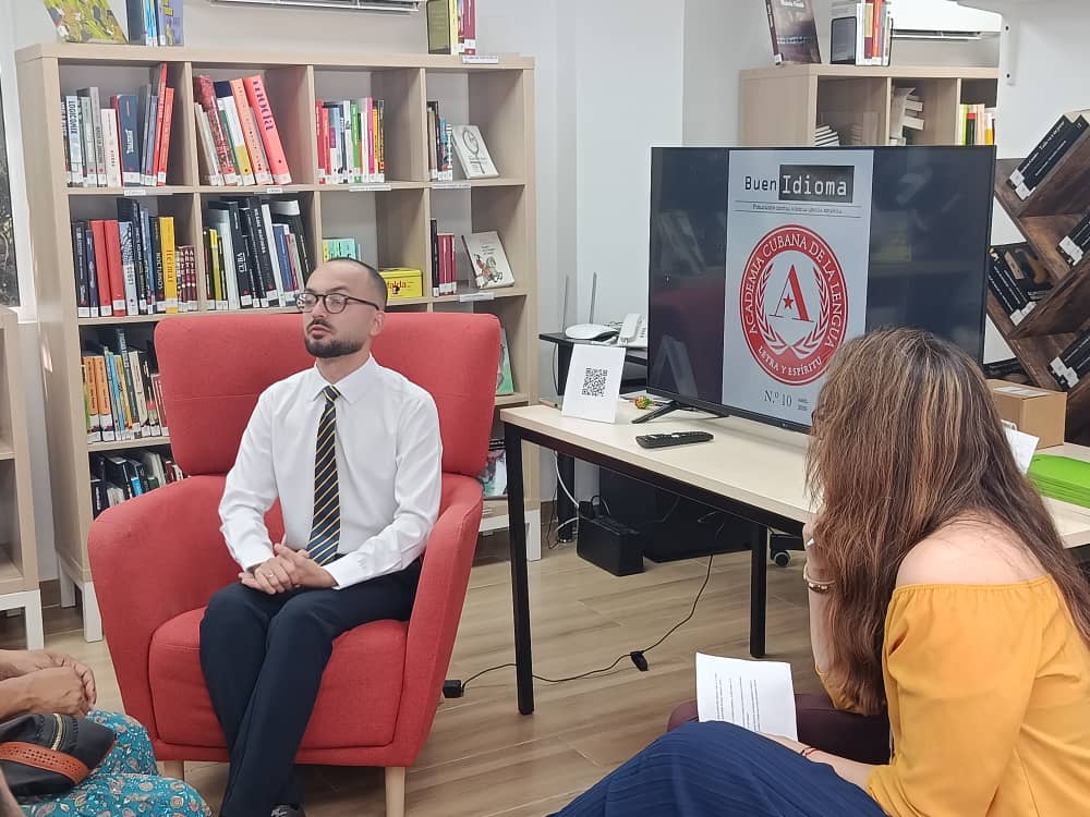 La presentación de la actividad corrió a cargo de la bibliotecaria Liudmila Báez Sánchez, quien dialogó con el director de la revista y líder de Buen Idioma, Cristian Martínez González, sobre el reto de dicha iniciativa, que cumplió seis años el día 15 de abril. De esta entrega, destacaron el gran número de colaboradores (académicos, lingüistas, periodistas…) y la calidad de los trabajos, incluso algunos de formato inédito en la revista, como el fotorreportaje y la caricatura.