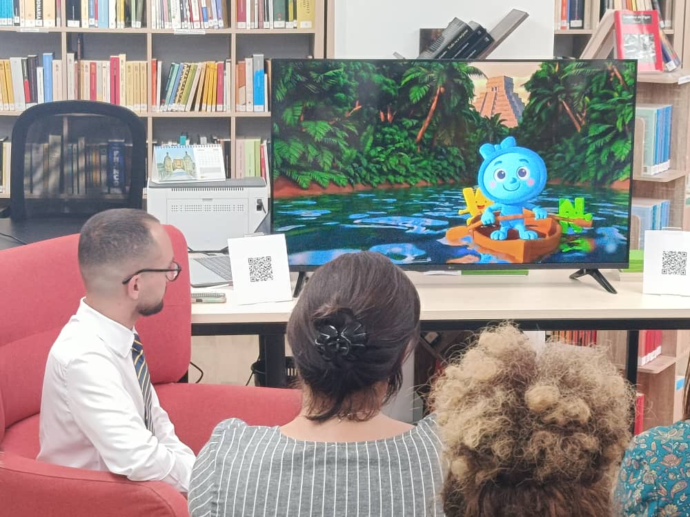 A este agradecimiento, le sumamos el haber aceptado y materializado nuestra propuesta de hacer dinámicas con sus estudiantes con motivo del Día del Idioma, del Libro y del Derecho de Autor. En la jornada de la mañana, también en la biblioteca un grupo de educandos se acercó a la literatura, pero lo hizo mediante las palabras, con retos de agilidad mental y fragmentos de obras célebres.